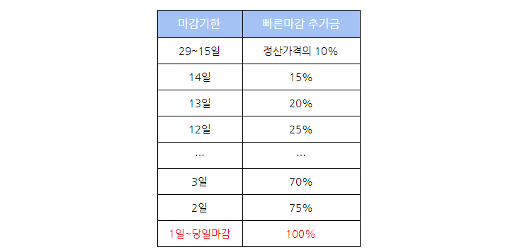 //// 빠른마감 추가금 안내 ////